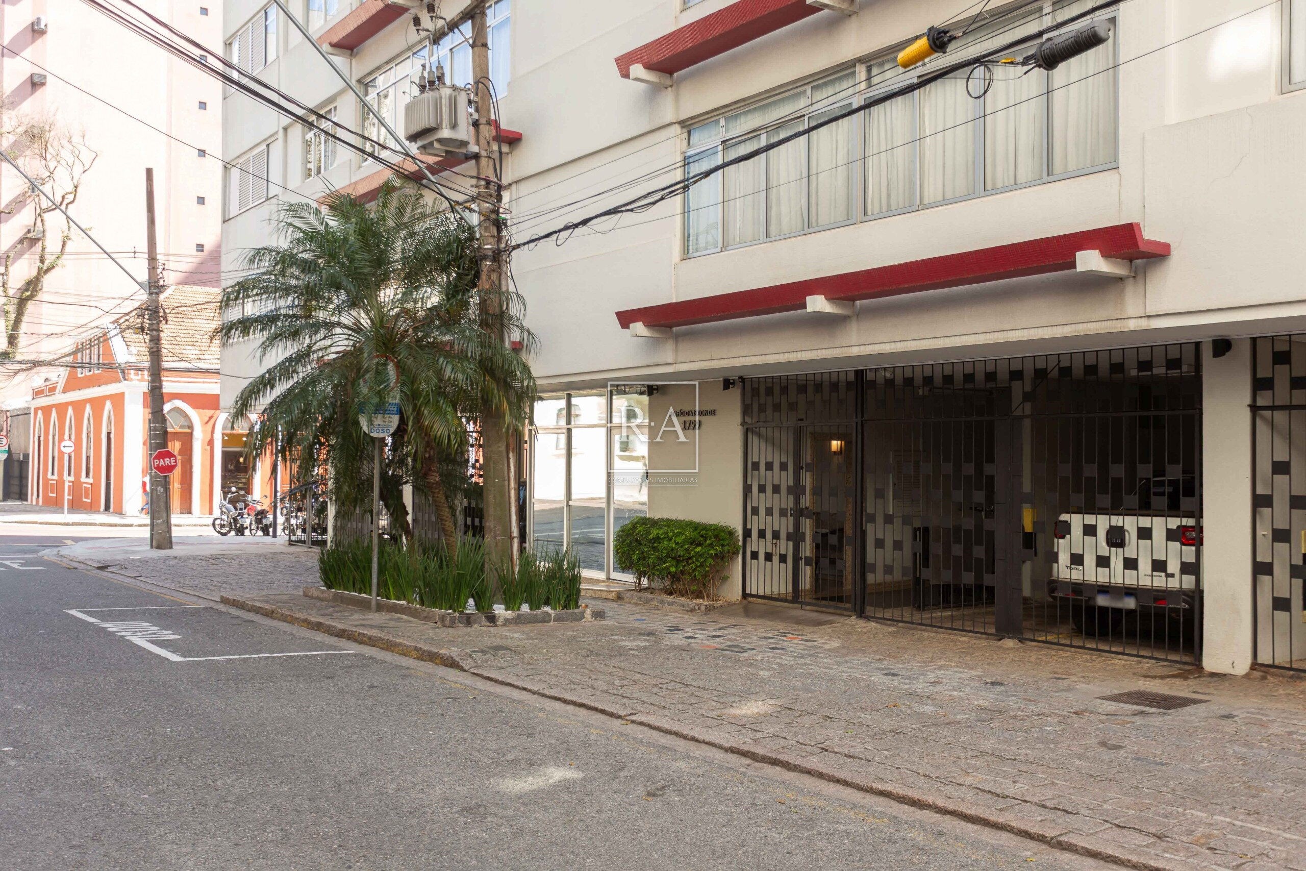 Edifício tradicional e bem conservado, pastilhado.