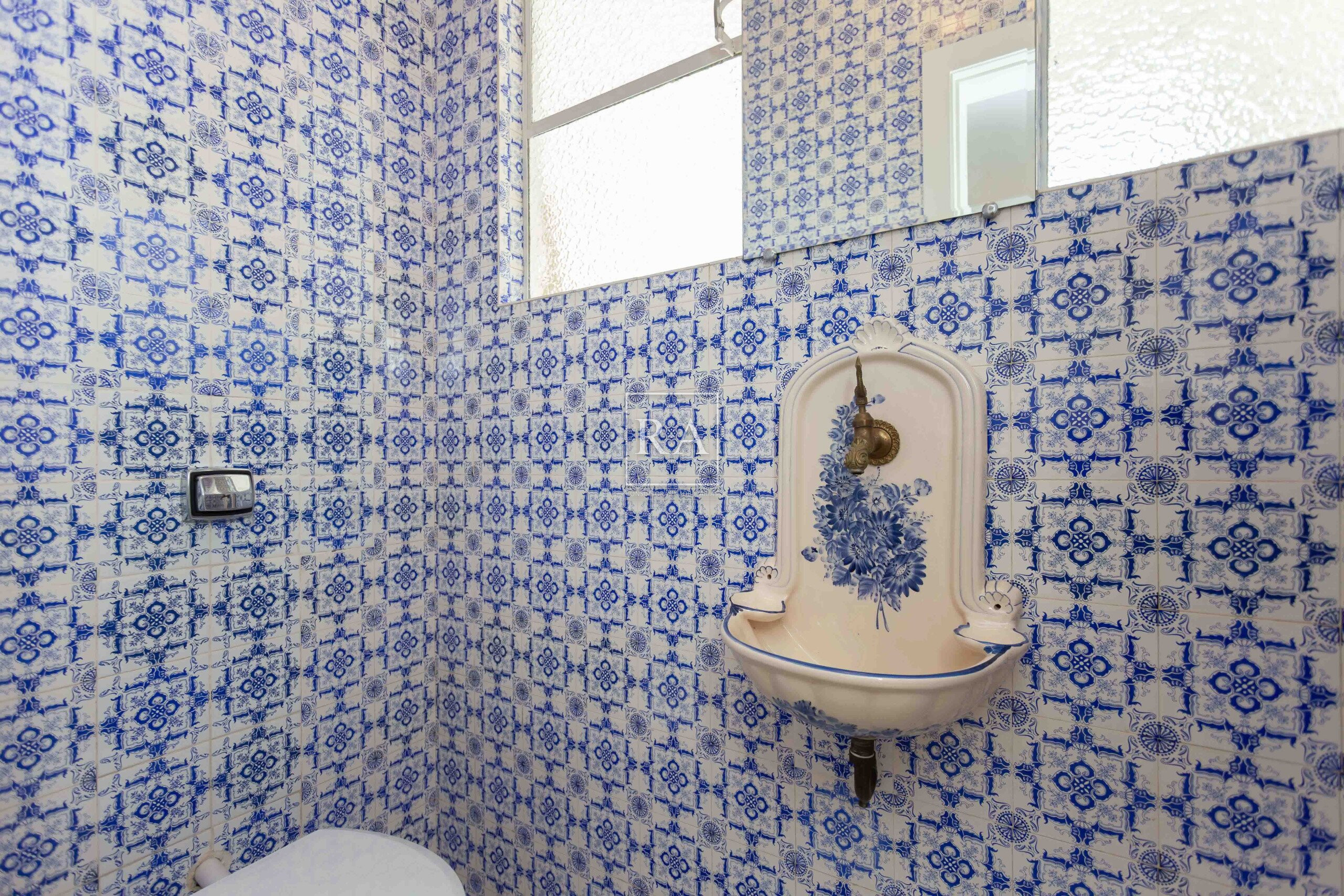 Lavabo estiloso com revestimento em cerâmica portuguesa.