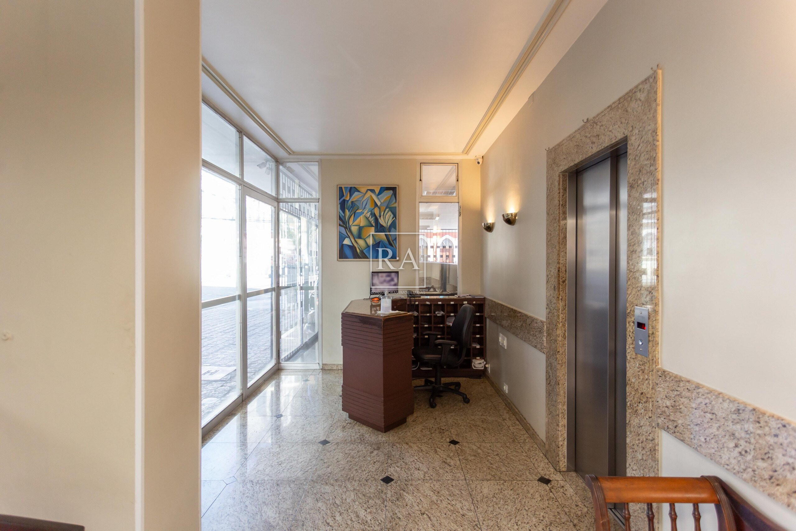 Predio de esquina, com 18 andares, dois apartamentos por andar, portaria 24horas, dois elevadores.